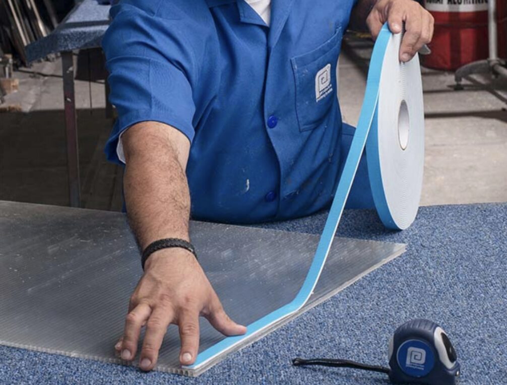 - Cintas sobre contacto: Las cintas de doble contacto son esenciales en la instalación de láminas de policarbonato, ya que permiten una fijación segura y hermética entre las láminas y los perfiles. Estas cintas, resistentes a la intemperie, proporcionan un sellado eficaz que ayuda a prevenir filtraciones de agua y entrada de polvo, asegurando una instalación duradera y limpia. Además, su flexibilidad las hace ideales para adaptarse a las expansiones y contracciones del policarbonato, garantizando un ajuste perfecto.