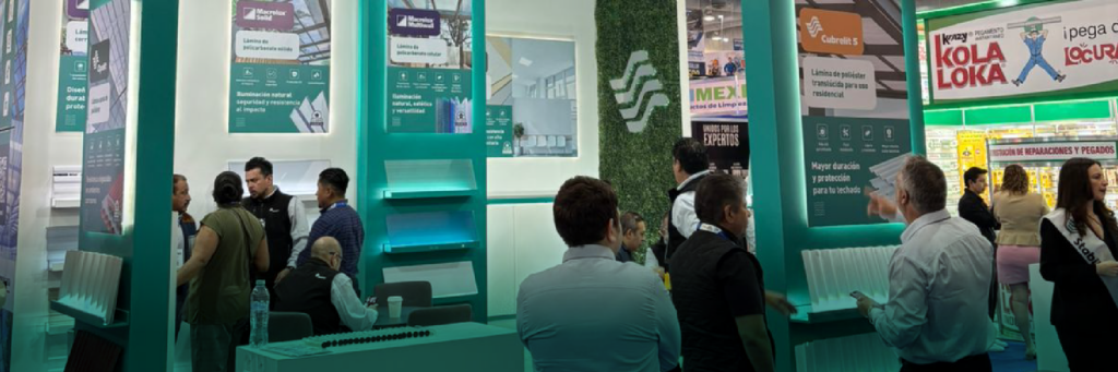 También mostramos nuestras soluciones translúcidas pensadas para optimizar el aprovechamiento de la luz natural en espacios industriales y comerciales. Entre ellas, se encontraron opciones de las familias Macrolux, Polylit 8, Poliacryl 10 y Resolite, orientadas a proyectos que buscan mejorar la iluminación interior y, al mismo tiempo, mantener un desempeño resistente en ambientes de alta demanda. En muchos casos, el valor de la iluminación natural va más allá del confort: se traduce en eficiencia operativa, mejor visibilidad en áreas de trabajo y un uso más inteligente de los recursos. Por eso, el interés del público por este tipo de soluciones fue constante a lo largo del evento.