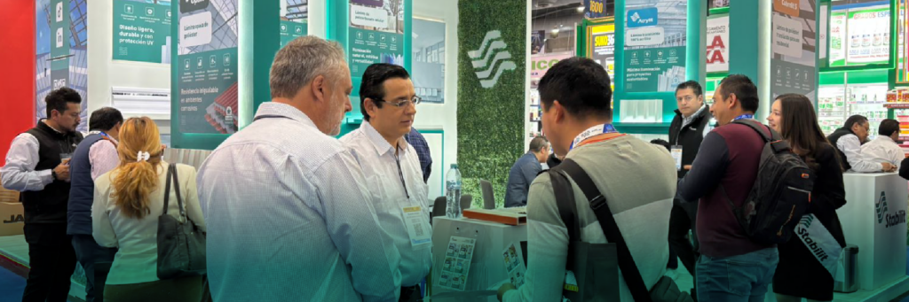 Durante la expo, presentamos un portafolio diseñado para responder a las exigencias actuales del sector, donde la resistencia, la versatilidad y la eficiencia se vuelven indispensables. En nuestro stand, los asistentes pudieron conocer de cerca nuestras láminas de policarbonato celular y sólido de la familia Macrolux, ideales para proyectos que requieren una combinación de ligereza, desempeño estructural y durabilidad. Compartimos información técnica, recomendaciones de instalación y ejemplos de uso para cubiertas, cerramientos y aplicaciones donde la confiabilidad del material es clave para el resultado final.