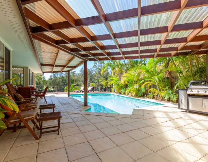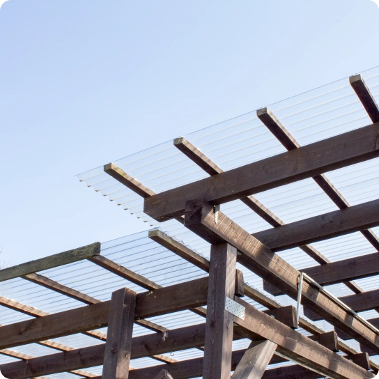 Macrolux Rooflite corrugated polycarbonate sheets can be used in residential areas. Being a polycarbonate sheet allows for design freedom, lightness for transportation and installation, and provides security due to its high resistance. Use it in terraces, laundries, patios, garages, door and window canopies.