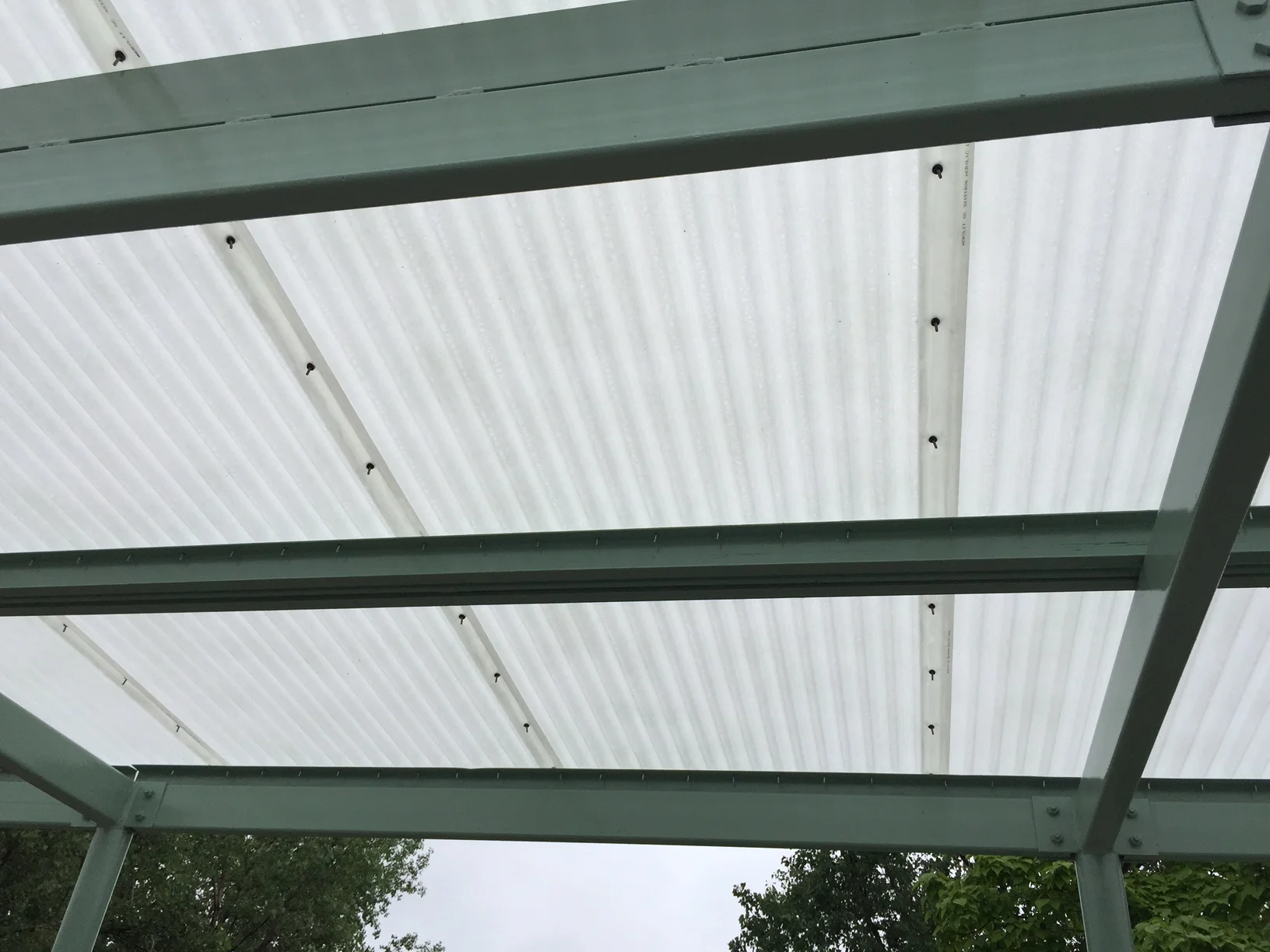 Installations of translucent polyester panels for commercial applications.